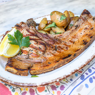 Plenty of dishes in our premises, in the inner courtyard with the opening roof that gazes at the stars in the summer, in our interior but also in Valtetsiou, depending on the time and mood.